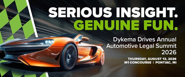 Dykema Drives Auto Webinar, Session #2 – Advanced Mobility: Shifting Risks, Evolving Rules on May 7, 2026. Register here.